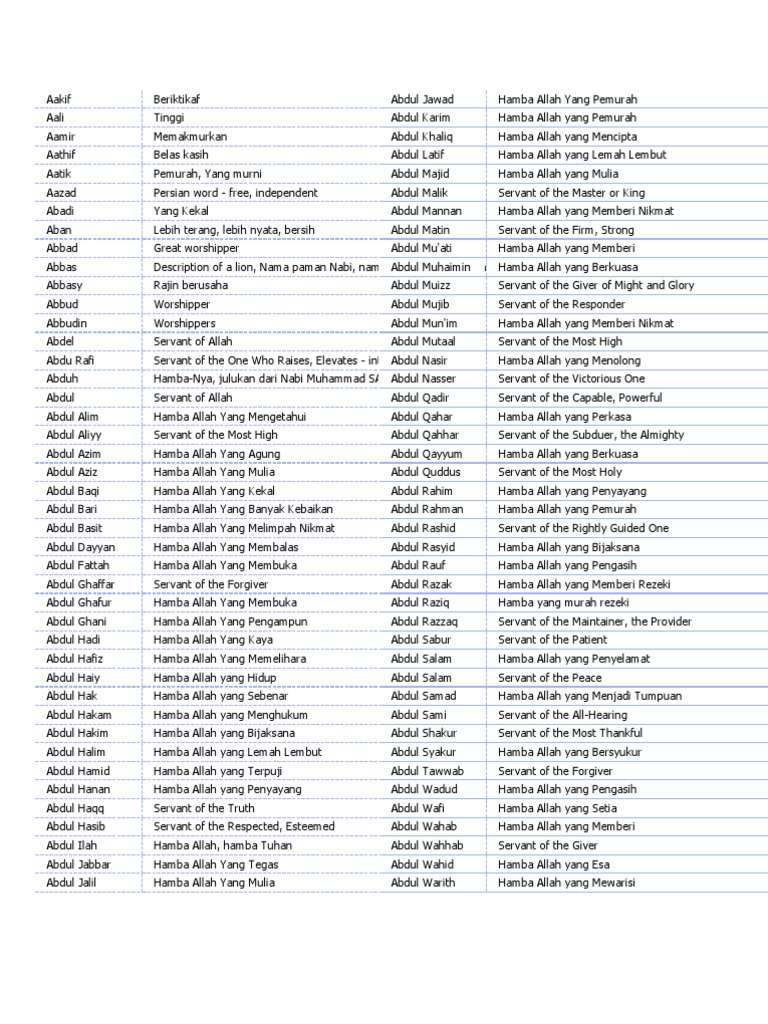 Keria Press Nama Nama Bayi Lelaki Dalam Islam 3 A Abdul Alim Hamba Allah Yang Mengetahui Abdul Azim Hamba Allah Yang Agung Abdul Aziz Hamba Allah Yang Mulia Abdul